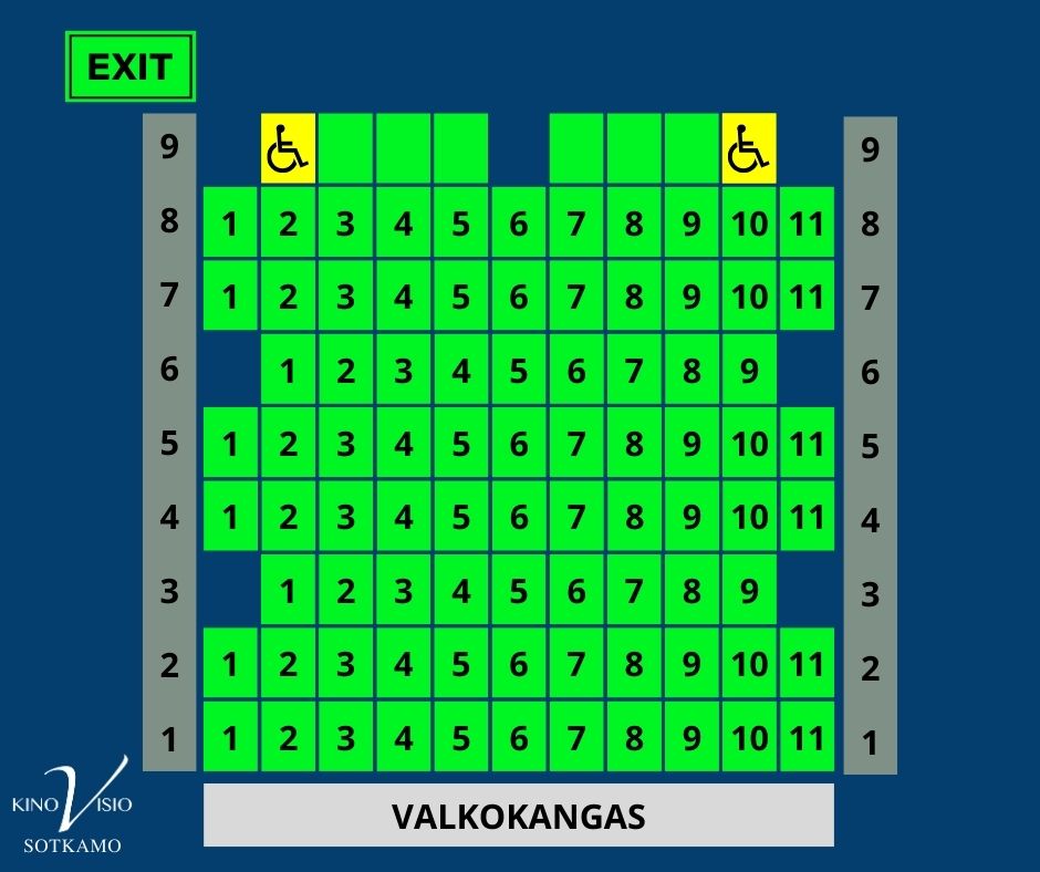 Vuokatissa on 109 asiakaspaikkaa, joista 2 paikkaa pyörätuoliasiakkaille. Esteetön WC lipunmyyntikerroksessa hissin vieressä. Pyörätuoliasiakkaan avustaja pääsee yhdessä avustettavan kanssa yhden lipun hinnalla elokuviin.