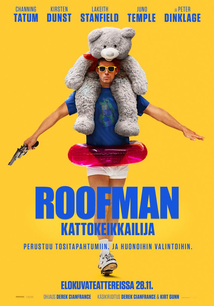 Channing Tatumin tähdittämä Roofman – Kattokeikkailija perustuu uskomattomaan tositarinaan vankikarkuri Jeffrey Manchesterista ja hänen villistä pakomatkastaan. Vankilasta paennut entinen sotilas ja ammattivaras Jeffrey löytää piilopaikan lelukaupan sisältä ja onnistuu elämään siellä kuukausien ajan kenenkään huomaamatta – samalla tehden murtokeikkoja kattojen kautta. Huolellisesti rakennettu kaksoiselämä alkaa kuitenkin rakoilla, kun hän rakastuu Leighin (Kirsten Dunst). Alkaa jännittävä takaa-ajo ja menneisyyden tapahtumat saavat Jeffreyn kiinni. Elokuvan on ohjannut Derek Cianfrance (Blue Valentine, The Place Beyond The Pines, Sound of Metal).